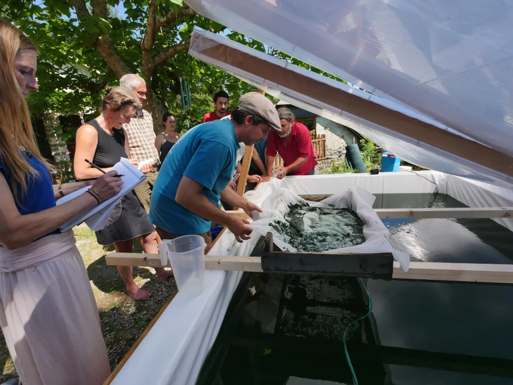 La permaculture de spiruline de la ferme expérimentale de la roquette Le bassin profond reconstituant l’environnement naturel du